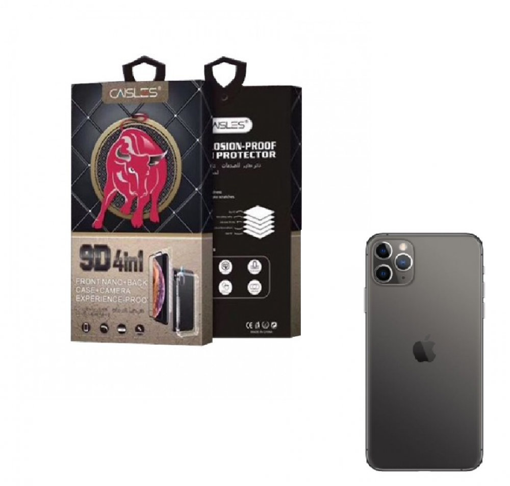 لميزات الاساسيه: بكج حماية ايفون 11 برو الثور نانو مقاوم للصدمات تكنولوجيا عالية لحماية الشاشة بأكملها استكر خلفي استكر امامي كفر شفاف مع اطراف سوداء حماية كاميرا