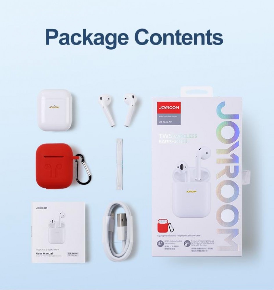 سماعة لاسلكية بلوتوث من شركة JOYROOM تدعم الشحن اللاسلكي تتميز بصفاء الصوت وعزل الضوضاء تعمل على جميع اجهزة الجوالات ايفون جلكسي هواوي تعمل باللمس بلوتوث الاصدار V.5 تعمل السماعتين مع بعض عند الأتصال ويمكنك استعمال سماعه وحده تعمل السماعتين مع بعض لمقاطع الفديوهات و الصوتية ويمكنك استعمال سماعه وحده تقترن على طول عند فتح غطاء البوكس حجم بطارية كل سماعة 45 امبير حجم بطارية البوكس 400 امبير تعمل كل سماعة ساعتين ونص متواصلة للفديوهات تعمل كل سماعة من3الى 4ساعات للأتصال المتواصل مدة الأنتظار 48 ساعة بدون العمل عليها مدة شحنها 3 ساعات جراب مجانا